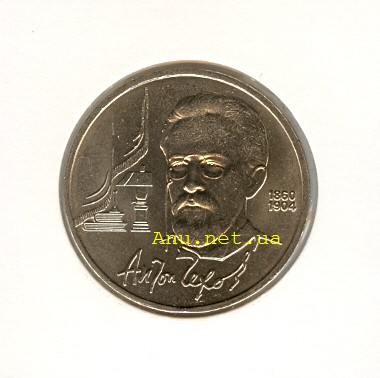 1 рубль. Медно-никелевый сплав белого цвета. Диаметр 31 мм. Толщина по краю 2,3 мм. Масса – 12,8 г. Тираж: всего – 3,0 млн. экз., в том числе 300,0 тыс. шт. улучшенного качества.