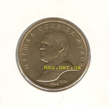 1990. Май, 8. Памятная монета с изображением маршала Советского Союза Г.К.Жукова, выпущенная в ознаменование 45-й годовщины Победы советского народа в Великой Отечественной войне 1941-1945 г.г.