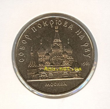 Памятная монета с изображением собора Покрова на рву в Москве (1989 года)