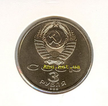 Для чеканки монеты использовался вариант шт.I(3 р.)(89), выполненный под диаметр монеты 33 мм, с датой "1989".