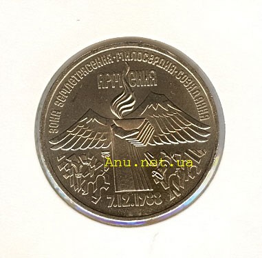 1989. Декабрь, 7. Памятная монета, посвященная всенародной помощи Армении в связи с землетрясением