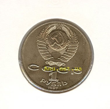 Шт.VI.2(87). Штемпель, аналогичный шт.VI.2(86), но с датой чеканки "1987". Параллели и меридианы на земном шаре в гербе вогнутые. Верхние ости вторых и третьих колосьев справа и слева длинные. Цифра "1" номинала приближена к третьей букве "С" в слове "СССР". Зазор между завитком и вертикальной стойкой у буквы "Р" в слове "СССР" маленький. Герб и дата приближены к внешнему ободку монеты.