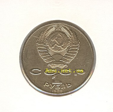 Тип VI. В верхней части поля по центру герб СССР. Под ним горизонтальная надпись "СССР". Ниже номинал "1 РУБЛЬ", написанный в две строки: в верхней строке цифра "1", в нижней - слово "РУБЛЬ", написанное по окружности. Под номиналом расположены цифры года чеканки.