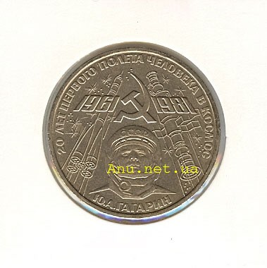 Монета повторного выпуска 1988 г. распространялась запаянной в целлофановый пакет совместно с монетой, посвященной 20-летию полета в космос В.В.Терешковой.