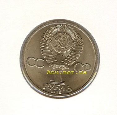 Для чеканки монеты использовался вариант шт. IV.2(85): под словом "РУБЛЬ" расположена дата чеканки монеты - "1985", вторые колосья в гербе с внутренней стороны с длинными остями, у левого внутреннего колоска справа три ости, левый луч звезды не касается ости, выходящей из верхнего зерна.