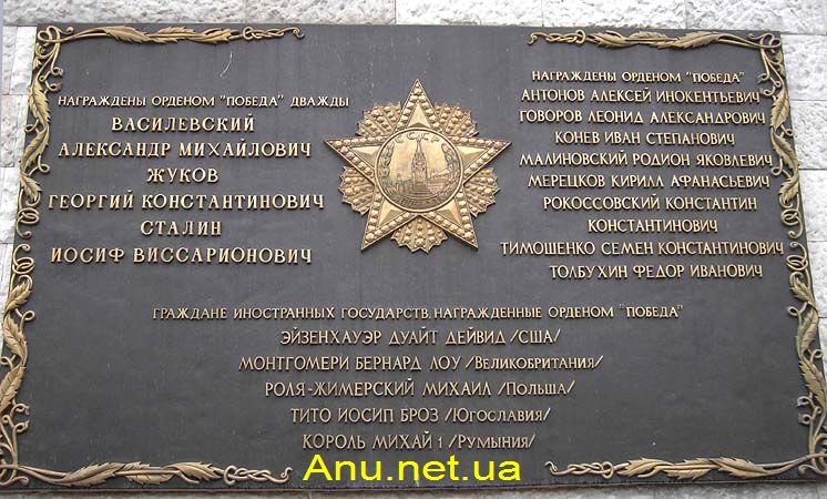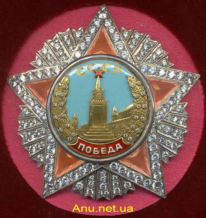 Орден “Победа” является высшим военным орденом. Им награждаются лица высшего командного состава Красной Армии за успешное проведение таких боевых операций в масштабе одного или нескольких фронтов, в результате которых в корне меняется обстановка в пользу Красной Армии.