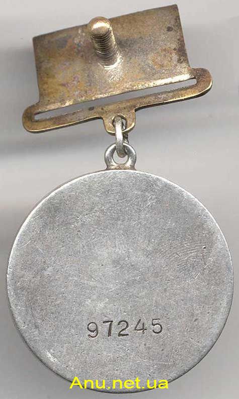 На оборотной стороне колодки имелся нарезной штифт и круглая прижимная гайка для крепления медали к одежде. Ушко медали выполнено из серебра и присоединено к медали методом пайки. Серийный номер медали расположен в нижней части реверса горизонтально.Ст. №2