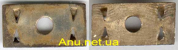 Прижимная пластина с "усами", фиксирующая ленточку на колодках медалей Тип 1, Вариант 1 (вид с двух сторон).
