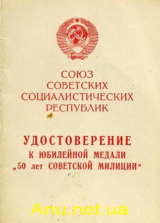 | Удостоверение к медали "50 лет Советской Милиции" |