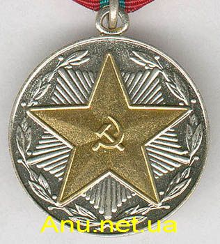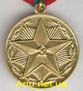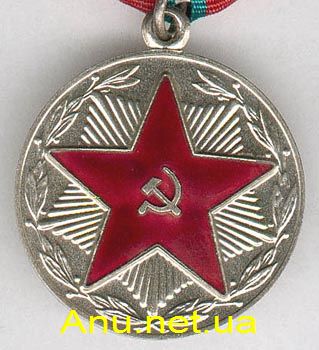 На лицевой части медали, в центре, расположена пятиконечная звезда с расходящимися из-под тупых углов звезды пучками лучей. В центре звезды – серп и молот. По окружности звезда окружена венком из лавровых листьев. Лицевая сторона медали имеет одинаковый рисунок для всех типов и разновидностей всех ведомств, учредивших ее. Исключение составляет второй тип медалей, учрежденных Комитетом Государственной Безопасности. У данного типа в нижней части аверса, между нижними лучами звезды, расположены римские цифры “ХХ”, “XV” или “Х” на I, II и III степени медали, соответственно.