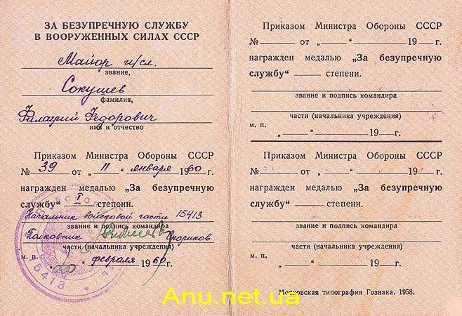Как было описано выше, свою медаль “За безупречную службу” учредило каждое из трех силовых ведомств – Министерство Обороны, Министерство Внутренних Дел и Комитет Государственной Безопасности.