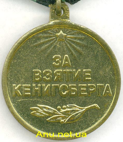 Медаль “За взятие Кенигсберга” изготовляется из латуни и имеет форму правильного круга диаметром 32 мм.