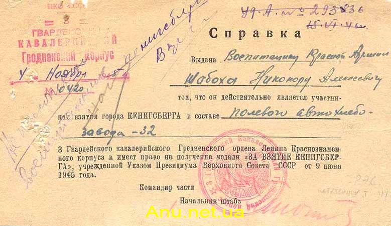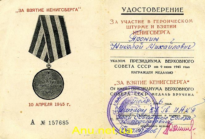 Можно выделить следующие варианты удостоверений к медали "За взятие Кенигсберга".