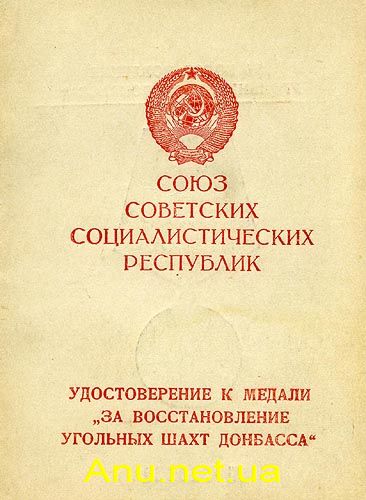 | Медаль “За восстановление угольных шахт Донбасса” | |