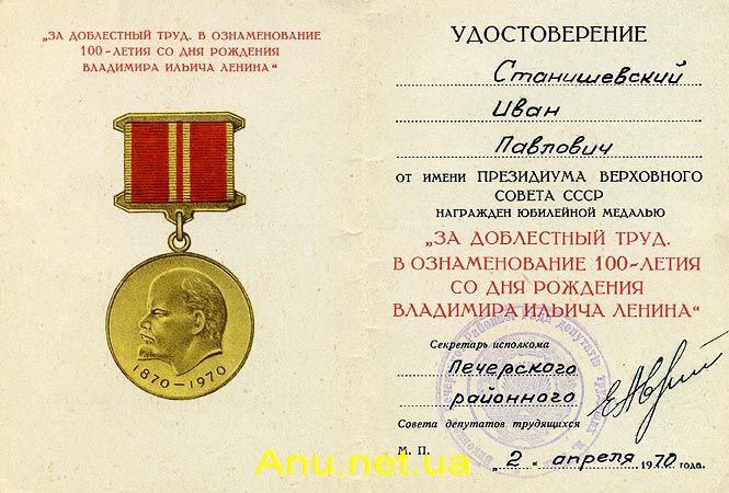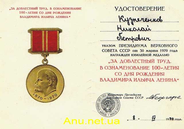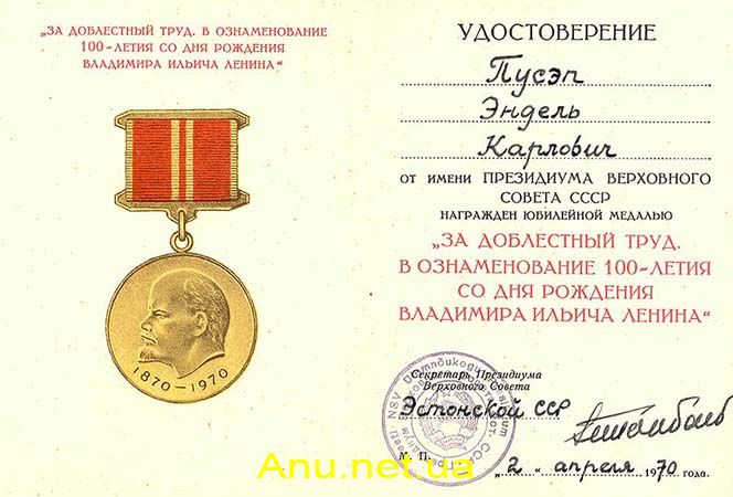 • “За доблестный труд. В ознаменование 100-летия со дня рождения Владимира Ильича Ленина”;