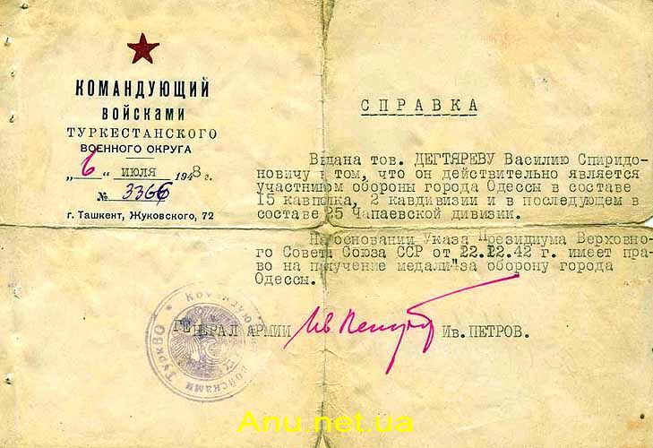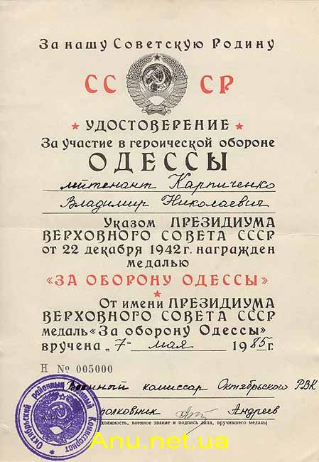 Лицам, имеющим право на награждение медалью "За оборону Одессы", вручалась соответствующая справка, заверенная печатью воинской части или соединения, а также подписью командира.