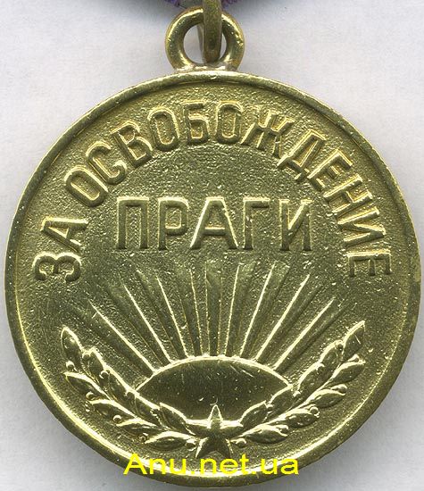 Медаль “За освобождение Праги” изготовляется из латуни и имеет форму правильного круга диаметром 32 мм.
