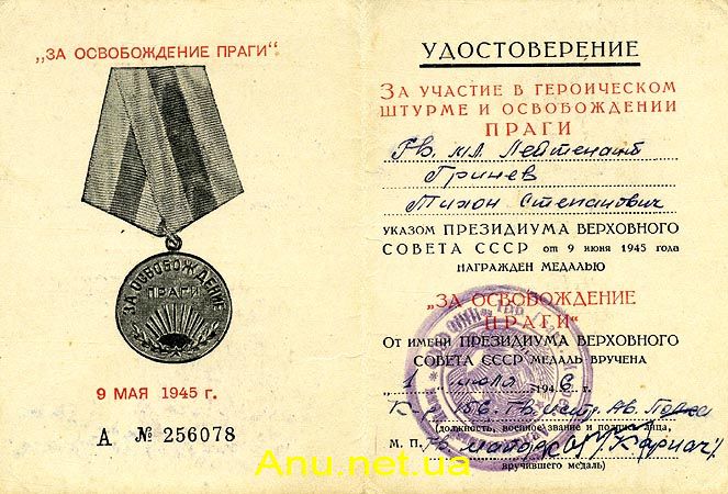 Можно выделить следующие варианты удостоверений к медали "За освобождение Праги".