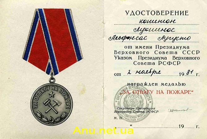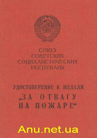 • за смелость, отвагу и самоотверженность, проявленные при тушении пожаров, спасении людей, социалистической собственности и имущества граждан от огня;
