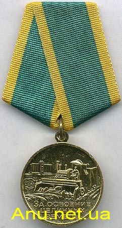 Медаль “За освоение целинных земель” носится на левой стороне груди и при наличии орденов и других медалей располагается после медали “За восстановление угольных шахт Донбасса”.