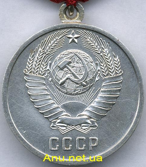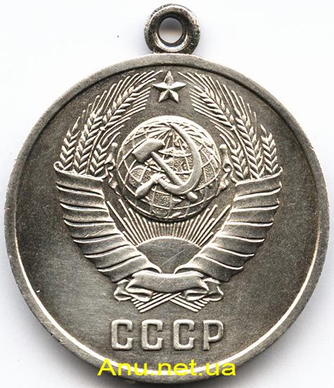 На оборотной стороне медали, в центре, выпуклой формы герб СССР. В нижней части медали, под гербом, рельефные буквы “СССР”.