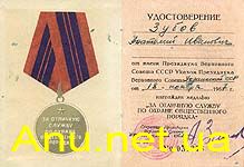 Удостоверение к медали.