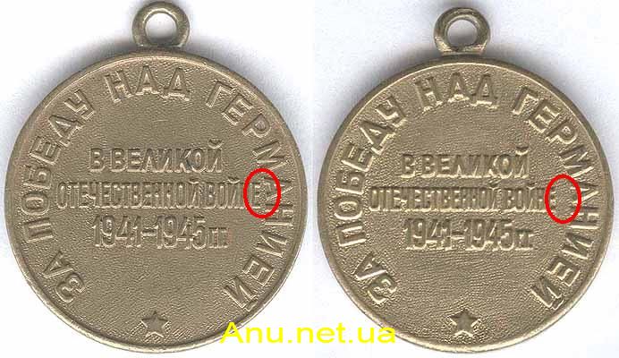 - Вариант 1. Ушко медали прикреплено методом пайки. Этот вариант вручался непосредственно после окончания ВОВ в 1945-46 годах. Колодка медали обычно двухслойная, выполнена из тяжелого металла.