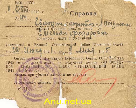 - Вариант 3. На гербе СССР 16 ленточек, в дате выписки удостоверения присутствуют три первых цифры года - 194 .