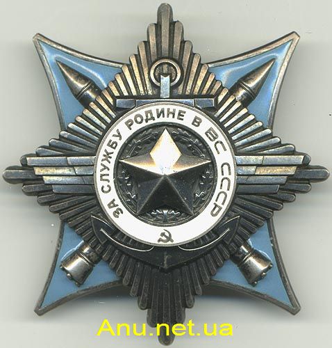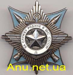 Орденом “За Службу Родине в Вооруженных Силах СССР” награждаются военнослужащие Советской Армии, Военно-Морского Флота, пограничных и внутренних войск: