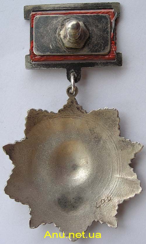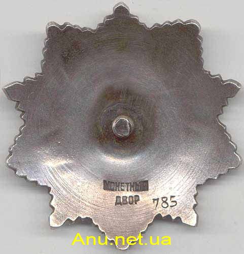 - Вариант 1. На реверсе находится булавка для дополнительного крепления ордена к одежде. Единственный известный номер для данного варианта - 20.