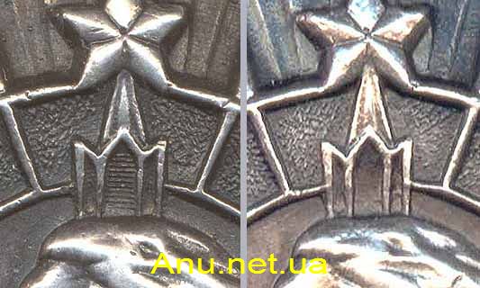 Сравнительное изображение фрагметов первой (слева) и второй разновидности обоих вариантов ордена.