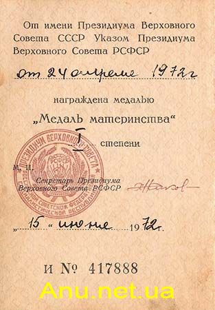 Награждение медалью “Медаль материнства” производится от имени Президиума Верховного Совета СССР указами Президиумов Верховных Советов союзных и автономных республик.