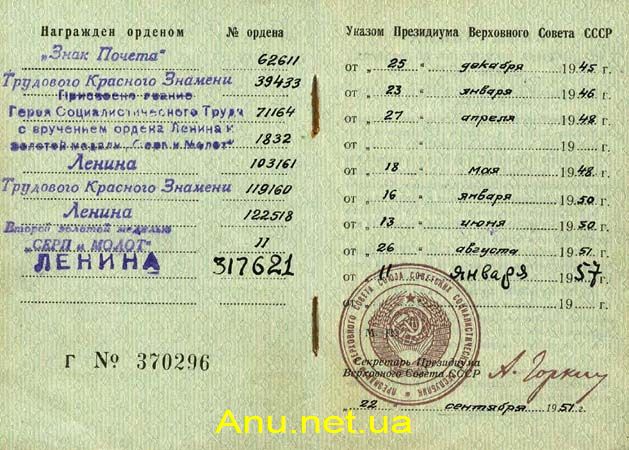 При награждении Героя Социалистического Труда орденом Ленина и медалью “Золотая Звезда” ему одновременно с орденом и медалью вручается грамота Президиума Верховного Совета СССР.
