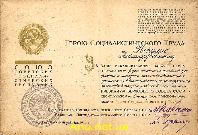 Указом Президиума Верховного Совета СССР от 5 ноября 1943 года звание Героя Социалистического Труда было присвоено сразу 127 (!) железнодорожникам и военнослужащим железнодорожных войск. Такое массовое награждение высшей степенью отличия государства было произведено впервые. Этим Указом были названы имена и первых в истории женщин, награжденных золотой медалью “Серп и Молот”: машинист паровоза Чухнюк Е.М., дежурная по станции Жаркова А.П. и стрелочница Александрова А.Н.