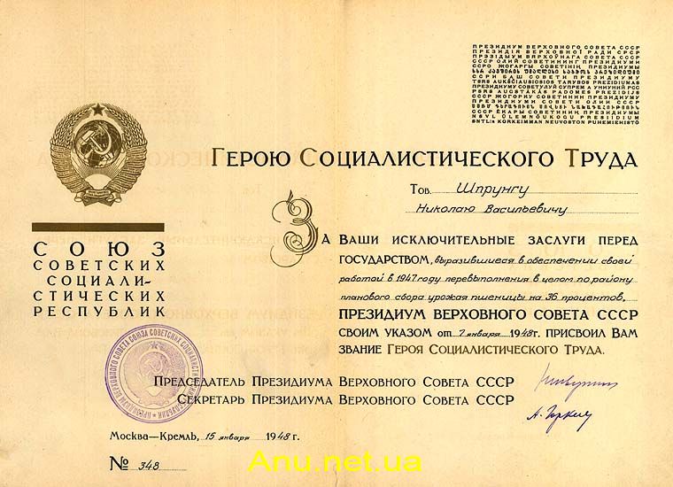 Звание Героя Социалистического Труда присваивается Президиумом Верховного Совета СССР.