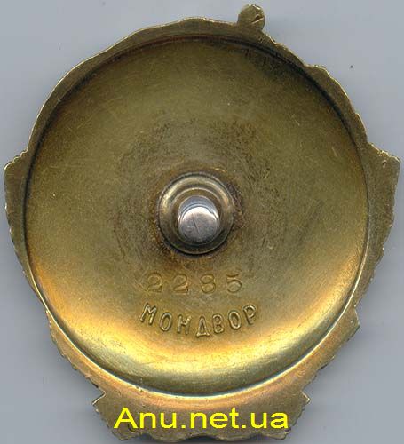 Номер ордена выполнен штампованными цифрами высотой приблизительно 1.75 мм. Расположен номер горизонтально, непосредственно под нарезным штифтом. Клеймо “МОНДВОР” выполнено выпуклыми буквами и расположено ниже номера знака. Клеймо слегка закруглено по дуге "впадинкой".