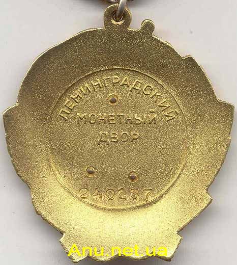 - Вариант 1. Ордена первого варианта выпускались на Ленинградском Монетном Дворе (ЛМД). На реверсе клеймо “МОНДВОР”. Для первого варианта можно выделить две разновидности, отличающиеся друг от друга незначительными различиями в структуре реверса.