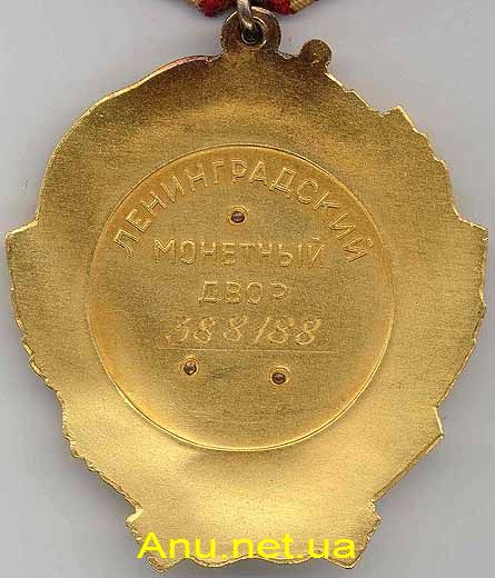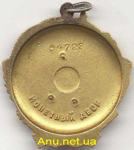 - Вариант 2. На реверсе клеймо “МОНЕТНЫЙ ДВОР”. В основании нарезного штифта находится одноступенчатый фланец. Возможно, что ранние номера второго варианта (до 7162) выпускались на ЛМД. На КМД выпуск второго варианта был продолжен, минимальный известный нам номер, изготовленный на КМД - 8631. Минимальный известный номер ордена – 6417, максимальный – 13333.