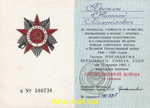- Вариант 2. В орденской книжке стоит подпись Председателя ВС СССР Горбачева и печать ПВС СССР.